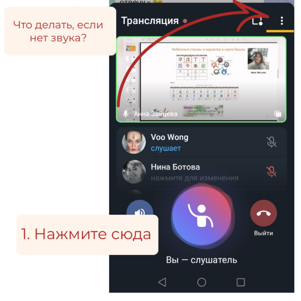Часто бывает так, что вы благополучно присоединились к трансляции, но ничего не слышите. Что же делать в таком случае? Смотрите фото-инструкции ниже)